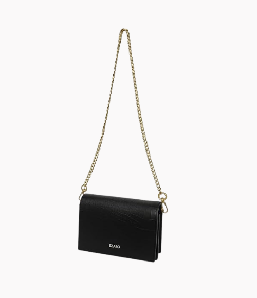 Porto Mini Black Crossbody Bag for Women | Croc-Embossed Vegan Leather